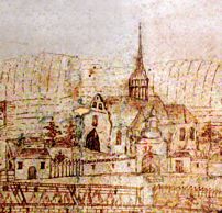 Poniżej kościoła, aż po obrzeże dworca kolejowego rozpościera się stary cmentarz. Ostatnie nagrobki znikły po 1945 r. Cmentarz powstał pod koniec XVI w.; pierwotnie chowano tu ofiary epidemii cholery, jaka nawiedziła miasto i okolice. Po 1629 r. służył wszystkim mieszkańcom aż do 1883 r.