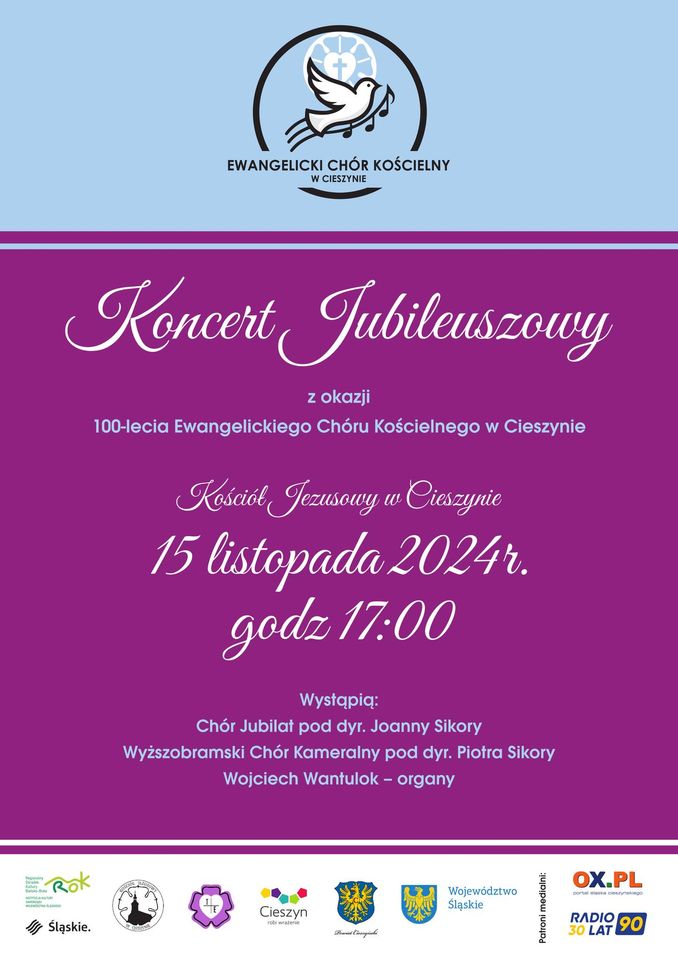 17:00 Koncert Jubileuszowy z okazji 100-lecia Ewangelickiego Chóru Kościelnego w Cieszynie (Kościół Jezusowy)