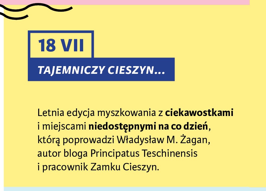 Letnia edycja myszkowania z ciekawostkami i miejscami niedostępnymi na co dzień, którą poprowadzi Władysław M. Żagan, autor bloga Principatus Teschinensis i pracownik Zamku Cieszyn. WIĘCEJ