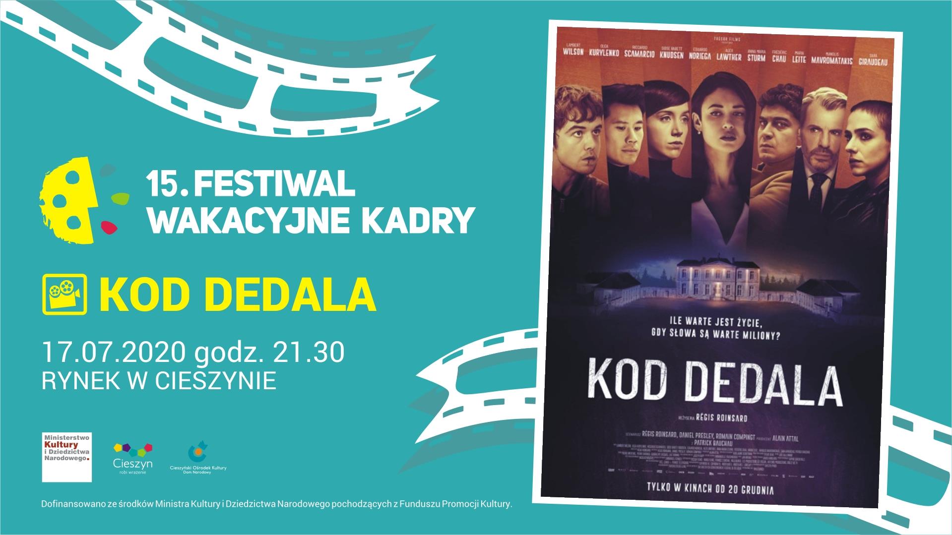 Filmowe piątki i koncertowe soboty przez całe lato w Cieszynie! W ramach 15. Festiwalu Wakacyjne Kadry zapraszamy w piątek 17 lipca 2020 r. o godzinie 21.30 na cieszyński Rynek! "Kod Dedala ", reż Régis Roinsard (Francja/Belgia, 2019, 105 min. od 15 lat).
