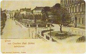 Zur Erinnerung an den Kronprinzen Rudolf, der Teschen 1877 besuchte, wurde ein Platz in der Stadt Kronprinz-Rudolf-Platz genannt. Rudolfs tragischer Tod 1891 in Meyerling erschütterte zutiefst die Teschener Bürger. Auf der rechten Seite des Bildes sieht man ein Fragment der 1879 erbauten Volks- und Bürgerschule.