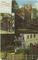 Der Drei-Brüder-Brunnen, der Piastenturm und ein Fragment der Schloßeinfahrt mit einem Springbrunnen wurden zum Motiv einer bekannten Faltpostkarte.