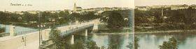 Die zweite Olsabrücke in Teschen (heute Most Wolności) wurde 1903 anläßlich des 55. Jahrestages der Thronbesteigung durch Kaiser Franz Josef I. eröffnet und „Kaiser-Franz-Josef-Jubiläumsbrücke" genannt. Im Hintergrund sieht man die Stadt sowie den Matterberg, wo im Jahre 1908 das Kaiserdenkmal enthüllt wurde.