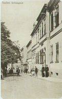 Die Schloßgasse - ein Blick vom Schloß aus in Richtung Lastenstraße. Früher führte die Schloßgasse bis zum sogenannten Freistädter Tor, hinter dem die Freistädter Vorstadt entstanden war. Rechts sieht man den Eingang ins Caféhaus und Restaurant Rudolf Buchtas jun.
