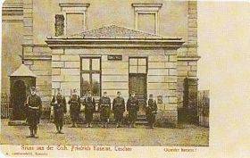 Das Gebäude der Offizierswache vor der Infanteriekaserne. Die Wache befand sich in dem Objekt Nr. 2 am Eingangstor, gleich neben dem Hauptgebäude. Außerdem befanden sich in diesem Gebäude auch die Kommandantur für den Nachschub und die Intendantur einiger Unterabteilungen.