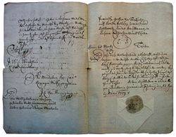 Abschrift der Genehmigung Kaiser Josefs II. für den Bau der Jesus-Kirche mit seinem Siegel beglaubigt, 1709