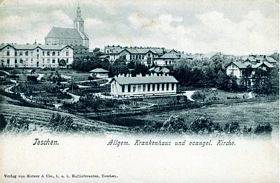Bis zum dritten Viertel des 19. Jahrhunderts gab es in Teschen nur kleine Krankenstätten, die in der Fürsorge der Orden der Elisabetherinnen und der Barmherzigen Brüder standen. Die Idee ein Krankenhaus mit ärztlichen Fachkräften zu gründen, beschäftigte zu dieser Zeit auch die Kreise der Protestanten. Sie waren jedoch nicht imstande, die benötigten Geldmittel für den Bau und den Unterhalt eines Krankenhauses zusammenzutragen. Im Jahre 1882 sollten neue Wahlen für das Amt des Superintendenten stattfinden. Als Kandidat meldete sich auch der damalige Propst der Teschener evangelischen Kirchengemeinde Pfarrer Dr. Theodor Haase (1834-1909). Er war eine führende Persönlichkeit mit einem großen Einfluß, repräsentierte die rationalistische Theologie und war gleichzeitig ein Verfechter der deutschen Kultur. Ihm war bewußt, daß er ohne die Unterstützung der sogenannten „polnischen“ Kirchengemeinden die erforderliche Stimmenmehrheit nicht erhalten würde, so daß er, um gewählt zu werden, in die Vorbedingungen der polnischen Partei einwilligte. Nach der erfolgreichen Wahl hielt er keines seiner Wahlversprechen ein. Dr. Haase hatte den Gedanken an den Bau eines Krankenhauses aufgenommen und, nicht ohne politische Ziele zu verfolgen, begann erdann energisch die Mittel für den Bau aufzutreiben. Bereits im Jahre 1888 wurden die ersten Pavillonhäuser feierlich in Betrieb genommen. Das ärztliche- und das Pflegepersonal bestand wie geplant aus Fachkräften, jedoch ausschließlich aus deutschen. Die Kirchengemeinde war indessen nicht imstande, das Krankenhaus zu unterhalten und zu erweitern, so daß von 1903 an die Landesregierung in Troppau (Opava) den Unterhalt übernahm. Im Jahre 1922 ging die Verwaltungsaufsicht über das Schlesische Krankenhaus auf die Bezirksverwaltung in Kattowitz über. Erst 1930 war der polnische Chirurg Dr. med. Jan Władysław Kubisz (1885-1948) dem sehr geschätzten und geachteten deutschen Chirurgen Dr. Hermann Hinterstoiser (1861-1932) auf den Direktorposten gefolgt. Dr. Kubisz begann nach und nach polnische Ärzte und polnisches Krankenpflegepersonal aus der Pflegeanstalt in Dzingelau (Dzięgielów) nach Teschen zu holen und im Krankenhaus zu beschäftigen. Er hatte entscheidend dazu beigetragen, das Krankenhaus auszubauen und zu reorganisieren, und nach dem Kriegsende im Jahre 1945 es erneut in Betrieb zu nehmen. An Dr. Kubisz, den ersten polnischen Krankenhausdirektor, erinnert eine Tafel am ältesten Pavillon.