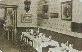 Der Innenraum der ältesten, 1749 gegründeten, Weinstube und eines Frühstückszimmers. Das Lokal befand sich im Besitz von Fritz Schulz, dem Nachfolger Friedrich Tureks und lag in der Kronprinzessin-Stefanie-Straße 16.
