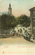 Blick auf die evangelische Jesuskirche und den Kirchenplatz von der Prutekgasse aus. Viele Jahrzehnte lang kamen Gläubige nicht nur aus Teschen, sondern auch aus den Nachbarndörfern in diese Kirche. Deshalb sah man häufig in der Umgebung der Kirche die Landbevölkerung in ihren malerischen Volkstrachten.