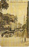 Die Villenstraße mit der evangelischen Kirche im Hintergrund. Auf der linken Seite sieht man das Haus der Familie Pohlner, dahinter ein Stadthaus mit einem Erker, in dem mehrere Jahre lang der sozialistische Politiker Tadeusz Reger wohnte. Auf der Straße sieht man einen der ältesten Teschener Automobile. Die ersten Autos waren 1908 auf den Teschener Straßen erschienen und hatten mit der Zeit die bis dahin üblichen Droschken und Pferdekutschen aus der Stadt verdrängt.