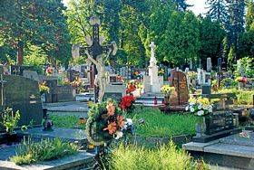 In einem weiter liegenden Teil dieser Abteilung findet man ein Erdgrab, das von einem gegossenen Kreuz geschmückt ist. Die Arme des Kreuzes sind aus einem durchbrochenen Band hergestellt, das mit Rosensträußen abschließt. An der Armkreuzung sind ein Glorienschein und eine Leiste mit der Inschrift INRI befestigt. Darunter steht eine Figur Christi mit zum Himmel gewandtem Kopf.