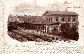 Die Kaschau - Oderberg (ungarisch: Kassa, slowakisch: Košice - Bohumín) Bahnlinie war die kürzeste Verbindung zwischen Ungarn und Deutschland - sie verband Budapest über das slowakische Kaschau und Oderberg in Teschener Schlesien mit Berlin. Im Jahre 1869 wurde diese Bahnlinie bis Teschen geführt und zwei Jahre später dann das erste Bahnhofsgebäude in Betrieb genommen. Nachdem die “Bahnlinie der Schlesischen Städte” von Kojetin (Kojetín) nach Bielitz (Bielsko) fertiggestellt worden war, entstand im Jahre 1889 an der heutigen Stelle auch ein neuer Bahnhof. Es handelt sich dabei um ein Ziegelgebäude im Stil der Neorenaissance, das aus drei Pavillonteilen besteht, die mittels Galerien miteinander verbunden sind. Die mit Stuck verzierte repräsentative Bahnhofshalle und das Restaurant sind bis heute erhalten geblieben. Die Bahn hatte eine bedeutende Rolle in der Entwicklung des am linken Ufer gelegenen Teschener Stadtteils und in der wirtschaftlichen Entwicklung der ganzen Region gespielt. Sie transportierte große Mengen Waren, zum Beispiel Kohle aus dem Ostrau-Karwiner Industriegebiet nach Ungarn, slowakisches Eisenerz nach Schlesien oder landwirtschaftliche Produkte nach Deutschland. Diese Waren und auch eine große Anzahl Reisender, besonders aus Galizien und Ungarn auf dem Weg nach Amerika über Berlin und Hamburg, passierten diesen Bahnhof. Auf dem Bahnhof wurde auch Kaiser Franz Josef I. begrüßt, als er nach Teschen kam. Bis heute ist der nunmehr renovierte Bahnhof ein wichtiger Knotenpunkt in der regionalen Kommunikation.
