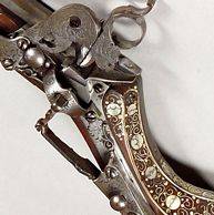 Tschinke genannt, wurde in Teschen von der zweiten Hälfte des 16. Jh.s an hergestellt. Sie diente zur Vogeljagd, so daß sie häufig Vogelflinte genannt wurde. Reiche Intarsien des Kolbens und des Schafts, Verzierung des Laufs durch Gravur sowie ein für damalige Zeiten moderner Schießmechanismus hatten bewirkt, daß dieses Gewehr schon bald zu einem ziemlich gesuchten Artikel wurde. Bis heute sind davon ungefähr 300 Exemplare erhalten geblieben, welche die Waffensammlungen der Museen und der Privatsammler schmücken. Schöne Tschinken befinden sich im Museum des Teschener Schlesiens. Man kann sie auch die älteste Bestechung in Teschens Geschichte nennen. Die Waffe wurde den Oberbefehlshabern fremder Truppen überreicht, die während des Dreißigjährigen Krieges aufeinander folgendend Teschen besetzt hielten. Dieses Geschenk sollte die Stadt vor Raub und Zerstörung schützen.