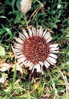 Der Rundblick auf Teschen und Tschechisch Teschen wird teilweise durch die charakteristische Grenzbrücke in Boguszowice verdeckt. Im Hintergrund sieht man die Berge der Mährisch-Schlesischen Beskiden, im Vordergrund die Objekte der Teschener Kläranlage. Zwischen der Kläranlage und der Stelle, wo wir uns befinden, dehnen sich Wiesen aus, auf denen nur ab und zu Baum- oder Sträuchergruppen wachsen und wo sich eine Motocrossbahn befindet. An manchen Stellen sieht man noch die Spuren der ehemaligen Feldraine, die einst die drei auf Terrassen angelegten Äcker in der Nähe des Waldrandes trennten. Die Feldraine und die steilen Abhänge waren damals die einzigen Plätze, wo wärmeliebenden Pflanzen vorgekommen sind. Sie wuchsen prächtig in dem schweren fruchtbaren Boden. Obwohl dieses Gelände seit Mitte der siebziger Jahre als Motocrossbahn genutzt wird (die Pausen zwischen den Veranstaltungen dauerten manchmal einige Jahre), werden die Naturforscher anhaltend von ihm fasziniert und überrascht, und zwar von seinem Reichtum an interessanten Tieren und Pflanzen, darunter auch solchen, die unter Naturschutz stehen. Seit Mitte der neunziger Jahre steht dieses Gelände als die ökologische Nutzfläche „Wiesen auf den Hügeln“ unter Naturschutz7. Die Wiesen haben eine Fläche von 15,2 Hektaren. Bevor wir jedoch den Waldrand verlassen und einen Spaziergang durch die Wiesen beginnen, betrachten wir etwas aufmerksamer das Pflanzenreich unter den Hochspannungsleitungen. Es ist ein schmaler, nur ein paar Meter breiter, Streifen, der den Wald von der Pflanzengemeinschaft Wiesen trennt. Die unter der Hochspannungsleitung aufkommenden Bäume und Sträucher werden alle paar Jahre entfernt. Es scheint, als ob es eine drastische Vorgehensweise wäre, sie ist jedoch wegen der Sicherheit und der geltenden Vorschriften notwendig. Als Folge des Abholzens von Bäumen werden die in der Bodenschicht wachsenden Pflanzen erstens aufgedeckt und zweitens bekommen manche von ihnen mit anderen Lebensbedingungen zu tun: die Licht liebenden Pflanzen wachsen plötzlich ungestüm, diejenigen, welche den Schatten lieben, verschwinden. Nach einigen Jahren, wenn die Sträucher und der Jungwuchs größer geworden sind, kehrt sich der Vorgang um: besser wachsen dann die den Schatten liebenden Pflanzen. Auf der ökologischen Nutzfläche „Wiesen auf den Hügeln“ wird keine genaue Spazierstrecke Via Natura angegeben. Es lohnt sich, das ganze Gelände zu durchqueren, indem man zum Beispiel zu diesem Zweck die Motocrossbahn benutzt (Natürlich nur dann, wenn sie nicht gerade von den Motorradfahrern beansprucht wird!). Die interessanteste Flora kommt in dem südöstlichen Teil der Wiesen vor, an dem steilen Abhang an der Dzika-Straße und in dem nordwestlichen Teil, der an das Naturschutzgebiet „Die Hügel“ grenzt . (An der Stelle, wo wir das Naturschutzgebiet verlassen haben, lagen die Wiesen auf einem Hang, der nach Süden abfiel, direkt vor uns.) Es wäre am besten, die Besichtigung an einem kleinen Teich in der Nähe der Kläranlage im Südosten des Geländes zu beenden. Auf dem Gelände der ökologischen Nutzfläche „Wiesen auf den Hügeln“ kann man einige ganz unterschiedliche Pflanzengemeinschaften antreffen. Die vorherrschende Rolle spielen dabei erstens die wärmeliebenden Wiesen und Grasdecken und zweitens die Kräuterpflanzen. Außerdem gibt es hier die Pflanzengemeinschaft der Sträucher oder sogar kleinere Wälder, in denen die gleichen Pflanzenarten wachsen, die wir bereits im Naturschutzgebiet „Die Hügel“ gesehen haben. An den feuchteren Stellen kommen Sumpfpflanzen und in dem kleinen Teich die Wasserpflanzengemeinschaft vor. An manchen Stellen herrschen hier Gräser vor, vor allem der Glatthafer und die Aufrechte Trespe, und dazwischen wächst ziemlich üppig die im Herbst aufblühende Herbstzeitlose. Von den vielen Arten, welche die Pflanzengemeinschaft Wiesen bilden, ist die große Kugeldistel beachtenswert. Es ist eine hohe, Nektar spendende Pflanze mit charakteristischen kugelförmigen Blütenköpfen (VII), die fremd in der einheimischen Flora ist. An den Stellen, wo die Sonneneinstrahlung größer ist, gehen die Wiesen in die niedrige Pflanzengemeinschaft der Grasdecken über. Dort kommen ziemlich häufig vor: der Quirlblütige Salbei ((VI-VII), die Kleine Wachsblume, das geschützte Tausendgüldenkraut mit kleinen violetten Blüten (VII-VIII) sowie der ebenfalls unter Naturschutz stehende Kreuzblättrige Enzian mit seinen dunkelblauen Blüten (VI-IX). Ähnliche Pflanzen können wir in der Nähe der Motocrossbahn beobachten. Auf der Erde, die von den Rädern der Fahrzeuge freigelegt wird, kommen häufiger als woanders seltene Gefäßpflanzen vor. Hier wachsen: das Tausendgüldenblatt, die Schopfige Kreuzblume, die geschützte Silberdistel (VII-IX), die Kleine Wolfsmilch und die Zypressenwolfsmilch (IV-VII), die geschützte Dornige Hauhechel (VI-VIII) sowie die Saatesparsette. Es sind verhältnismäßig niedrige, Licht liebende Pflanzen, die keine Chance hätten in der Gesellschaft von hohen Kräutern und Gräsern zu überleben, die in diesem Gebiet vorherrschen. Auf den ehemaligen Feldrainen wachsen etwas höhere Pflanzen, die der Pflanzengemeinschaft der Kräuter angehören. Es sind unter anderem: der gelb blühende Gemeine Odermennig (VI-VIII), die Bunte Kronwicke (V-IX), der Echte Dost (auch Wilder Majoran genannt, der von VII bis IX blüht) und die unter Naturschutz stehende Gewöhnliche Akelei mit schönen, ungewöhnlich geformten Blüten in dunklem Blau (V-VII). An feuchteren Stellen haben sich Pflanzengemeinschaften mit dem Riesenschachtelhalm ausgebildet. Er steht unter Naturschutz, hier kommt er aber ziemlich häufig vor. Beachtenswert sind zwei Arten von Trieben bei diesem Schachtelhalm. Im Frühling erscheinen die niedrigen generativen Triebe, die an eine Lanzenspitze erinnern und aus der Erde emporragen, und im Sommer sprießen dann üppig die grünen vegetativen Triebe, die b