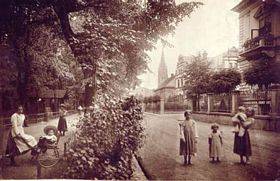 Wir verlassen die Kirche, gehen nach links und dann die ehemalige Erzherzog-Albrecht-Allee Masarykovy sady) entlang. Ehemalige Erzherzog-Albrecht-Allee Masarykovy sady