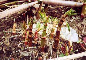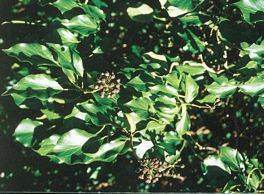 - ein junger Trompetenbaum, der neben der Papierbirke wächst;