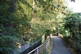 Von der Sportstraße gehen wir zur Schloßstraße zurück. Diesmal haben wir die Olsa auf unserer rechten Seite.
