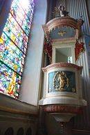 Wir kehren durch die stark belebte Bobrekstraße (ul. Bobrecka) in die Stadt zurück. Früher war die Bobrekstraße ein Feldweg, der in das Dorf Bobrek führte. Dort hatten viele Teschener Bürger ihre Gärten oder Gutshöfe. Wir gehen also die Bobrekstraße entlang, überqueren zwischendurch eine große Kreuzung mit einer Ampelanlage und erreichen am Ende der Straße die Kochanowskistraße (ul. Kochanowskiego). Jetzt brauchen wir nur noch ein paar Schritte nach links zu gehen, und biegen dann rechts in die Scherschnikgasse (ul. Szersznika) ab. Nach ein wenig mehr als einem Dutzend Schritte erreichen wir die Heiligkreuzkirche.