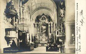 Die Kirche hat drei Kapellen. Die Heiligkreuzkapelle wurde im Jahre 1660 von Johann Friedrich Larisch gestiftet. Ihr Schmuckstück ist der Altar im Barockstil mit einem großen Kreuz und der Darstellung von Personen, die es verehren. Nebenan, vom Kirchenschiff durch ein gotisches Portal getrennt, befindet sich die Melchior-Grodziecki-Kapelle, in der ein Bildnis des heiligen Melchior Grodziecki hängt, das von Jan Wałach gemalt wurde. Auf der anderen Seite finden wir die Kapelle der Maria von Immerwährender Hilfe. Die Kapelle mit zwei Jochen hat einen quadratischen Grundriß. Sie wurde im Jahre 1809 eingerichtet; es befindet sich dort ein Gemälde, das angeblich ein Soldat als Weihgeschenk für seine Rettung während der napoleonischen Kriege zurückgelassen hatte. Die Kirche ist ein Sanktuarium der Teschener Mutter Gottes. Ihr Bildnis, geschmückt mit einer Filigran-Krone, befindet sich im Bereich des Hauptaltars.