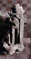 Es blieb ebenfalls auf dem Sarkophag in einer Nische des Chorraumes eine Grabfigur eines Piastenherzogs erhalten. Ursprünglich befand sie sich vor dem Altar über der Gruft der Piasten. Man weiß nicht mit letzter Sicherheit, wen diese Grabfigur darstellt. Anfang des 19. Jahrhunderts war man überzeugt, daß es sich um eine Abbildung des Herzogs Adam Wenzel handelt, der den Dominikanern die während der Reformation weggenommenen Kirche und Kloster zurückgegeben hatte. Die Figur ist jedoch viel älter. Sie stammt aus der Wende vom 14. zum 15. Jahrhundert und wurde von einem Bildhauer angefertigt, der der Werkstatt von Peter Parler angehörte. Neben der Teschener Madonna-Statue ist diese Grabfigur das wichtigste Kunstwerk, das Teschens enge Verbindungen mit dem Hofe der Luxemburger in Prag belegt. Sicherlich stellt sie den Herzog Primislav I. Noszak selbst dar. Er war, wie bereits erwähnt, die rechte Hand des Kaisers Karl IV. und seines Sohnes König Wenzel IV. Die Figur zeigt den Herrscher im fortgeschrittenen Alter, in einer königlichen Haltung, mit der Herzogkrone, mit einem Schwert in der Hand und mit Füßen, die sich auf einen liegenden Löwen stützen. Herzog Primislav war einer der Gönner der Kirche, unter anderem hatte er dort die St.-Andreas-Kapelle einrichten lassen. Wir wissen auch, daß er in der Gruft dieser Kirche beerdigt wurde, genauso wie die meisten anderen Herrscher und ihre Familien aus der Teschener Piastenlinie. Die Dominikanerkirche war doch die Begräbnisstätte dieser Dynastie. Aus einem Dokument aus dem Jahre 1408 geht hervor, daß sich die Gruft der Vorfahren von Herzog Primislav im Chorraum, ganz in der Nähe des Altars (jetzt im Seitenschiff), befunden hatte. Auf Grund des tiefgreifenden Umbaus an der Wende vom 18. zum 19. Jahrhundert wurden die alten Grüfte beseitigt. Untersuchungen, die von einem eigens dafür eingesetzten Komitee durchgeführt wurden, brachten zutage, daß sich im Untergeschoß der Kirche zahlreiche, nicht miteinander verbundene Grüfte befanden. Der Zustand der dort gefundenen Gebeine erlaubte jedoch nicht, eine von den Grüften als die Begräbnisstätte der Teschener Piasten zu erkennen. Besser erhalten geblieben waren die Überreste anderer dort beerdigter Personen, die mit den Piasten nichts gemeinsam hatten. Man fand zum Beispiel den Sarg einer im Jahre 1608 verstorbenen schwedischen Aristokratin Sigrid Brahe. Der Schmuck von ihrem Sarg ist jetzt im Museum des Teschener Schlesiens ausgestellt.