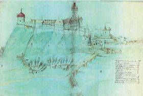 Das Teschener Schloß faßte in seinen besten Tagen sogar zwei tausend polnische und dreihundert böhmische Ritter. Sie bildeten im Jahre 1454das Gefolge von Elizabeth von Habsburg, der Braut des polnischen Königs Kasimir Jagiellonczyk. Weitere Ausbauten hatte man in den Zeiten Kasimirs II. vorgenommen. Damals wurde wahrscheinlich der Verteidigungsturm errichtet, der mit Kanonen ausgerüstet war. In der Ausschmückung seiner Residenz hatte der Herzog bewußt an die Zeiten seines großen Großvaters Primislav Noszak angeknüpft. In diesen Jahren hatten aber Brände zweimal das Schloß zerstört: 1484und 1520. Ein weiterer Brand suchte das Schloß im Jahre 1603heim, als bereits Herzog Adam Wenzel in Teschen herrschte. Wie die Chronisten berichten, war das Schloß zu dieser Zeit eine Art Waffenlager, weil Adam Wenzel ständig Kriege führte, vor allem mit den Türken. Das Schloß selbst wurde jedoch bislang nie belagert. Die Lage änderte sich während des Dreißigjährigen Krieges (1618-1638), als das Schloß einige Male von verschiedenen Truppen besetzt wurde. Die schlimmsten Folgen hatte die Eroberung im Jahre 1645 durch die schwedischen Truppen sowie die Belagerung im Frühling 1646 durch die Truppen der Habsburger. Es sind Zeichnungen aus der Belagerungszeit erhalten geblieben. Sie zeigen unter anderem die Position der Kanonen und das Schloß fünf Minuten vor dem tragischen Ende. Als Folge des Kanonenbeschusses und der Unterminierung war das Schloß bereits zerstört, bevor die Schweden sich schließlich entschlossen hatten, sich zu ergeben. Herzogin Elisabeth Lukretia war nicht mehr ins Schloss zurückgekehrt; sie hatte auch die Mittel nicht, um es wiederaufzubauen. Die nach ihr herrschenden Habsburger waren noch weniger an einem Wiederaufbau interessiert. Das Schloß wurde dann Sitz der herzoglichen Güterverwaltung der Habsburger, der sogenannten Teschener Kammer. Sie hatte die Trümmer dazu benutzt, die benötigten Wirtschaftsgebäude zu errichten. Die vorgesetzten Behörden hatten in Gefahrenzeiten (zum Beispiel während der Aufstände in Ungarn) eine Reparatur der Schloßmauern angeordnet; diese Anordnungen wurden jedoch nicht befolgt. Die alten Objekte nutzte man je nach augenblicklichem Bedarf; man errichtete auch neue, zum Beispiel eine Branntweinbrennerei oder die Schloßbrauerei. Die Habsburger selbst hatten das Schloß und die Stadt Teschen nur gelegentlich besucht. Eine Änderung trat erst in den dreißiger Jahren des 19. Jahrhunderts ein. Der damalige Eigentümer des Teschener Herzogtums Erzherzog Karl von Habsburg beschloß nämlich, das Schloß in eine Sommerresidenz umzuwandeln. Im Jahre 1836 begann man dann die Reste des Oberen Schlosses abzureißen, ohne aber den Piastenturm und die St.-Nikolaus-Rundkirche in diese Maßnahmen einzubeziehen. Die Rundkirche hatte man der klassizistischen Architektur des neuen Jagdschlosses im Stil angepaßt. Das Jagdschloß wurde von dem bekannten Wiener Architekten Josef Kornhäusel entworfen. Das Gelände des Schloßberges wurde planiert, und man hatte dort einen romantischen Park angelegt, für den man Bäume aus verschiedenen Teilen Europas hatte holen lassen. Vom Ende des 19. Jahrhunderts an konnten auch an bestimmten Tagen die Einwohner von Teschen den Park besuchen. Im Jahre 1914hatte man, als letzte Baumaßnahme im Bereich des Oberen Schlosses, an Stelle des Bergfrieds künstliche Ruinen angelegt.