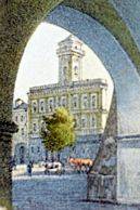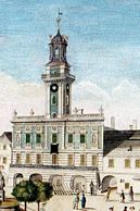 „ ... Wewnątrz miasta stoi przy wielkim rynku murowany ratusz, dosyć obszerny, z obszernymi salami dla sądu, i z piękną wieżą z zegarem, na której o letnim czasie gra muzyka parę razy dziennie. Na ratuszu urzęduje burmistrz i doradza mieszczanom według prawa śląskiego i włada według książęcego porządku prawa ziemskiego ... „