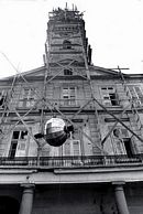 „ ... W roku 1661 odnowiono budynek ratusza i zgodnie z umową zawartą 9 sierpnia tegoż roku z malarzem Krzysztofem Palmem, fasadę ratusza ozdobiono następująco: w środkowym polu umieszczono mocno pozłacaną rzeźbę Najświętszej Panny Maryi w królewskiej koronie, trzymającej na ręku Dzieciątko Jezus, otoczoną rzeźbioną aureolą. W pierwszym polu na zewnątrz i z boku od okna przedstawienie św. Wacława, w drugim polu pełny herb cesarski z dwugłowym orłem otoczony wieńcem wawrzynowym, podtrzymywany przez dwie zbrojne postacie męskie. W czwartym polu herb księstwa wykonany w ten sam sposób. Poniżej okien znajdowały się herby miasta i miejskiego sądu w wawrzynowych wieńcach, a nad oknami postacie symbolizujące Wiarę, Nadzieję, Miłość, Sprawiedliwość i Mądrość. Wszystko to malowane było dobrymi i wytrzymałymi farbami. Tarczę zegarową oraz wskazówki zegara ratuszowego odmalowano i pozłocono, a nad całością umieszczono napis HEAC DOMUS, ODIT, AMAT, PUNIT, CONSERVAT, HONORAT, NEQUITAM, PACRM, CRIMINA JIURA, PROBOS (Ten dom nienawidzi złości, kocha pokój, karze zbrodnie, utrzymuje prawych, czci uczciwych),. Za wykonaną pracę oprócz bezpłatnego wyżywienia, mieszkania i kwarty wina wydawanej dziennie, malarzowi zapłacono 30 talarów...”