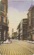 A view of Arch. Stephana street looking towards Demel square (nowadays Rynek). On the side wall of the tenement-house of the Seeman family butchers there can be seen the advertisements of many well-known Cieszyn companies. For many years, in the neighbouring tenement-house, there was situated Pawel Stalmach's (the Cieszyn Starlet) editorial office, which he managed himself.