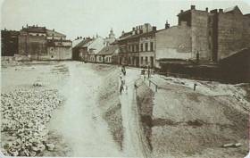 Barracks Square and Barracks street (nowadays A. Fredry). A view after the demolishion of the old barracks, while the site was being levelled and the steep slope over Mint street was cleared away. During the work human bones were found from the cemetery situated near the old parish church, which were carried over to the Communal Cemetery.