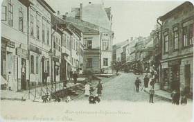 A view of Arch. Stephana street looking towards Demel square (nowadays Rynek)