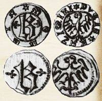 Money in different forms has always accompanied the people of Cieszyn. Initially, like everywhere else it used to be commodity monies functioning as a means of exchange. During the times of domination of the Great Moravian Empire tribes inhabiting Silesia used iron currency bars in the shape of an axe as a form of pre-coinage money. A huge collection of them (3.5 tonnes) was discovered in Okół, Cracow. The same iron bar has been found only a few kilometres from Cieszyn, in the stronghold in Chotěbuz (Kocobędz-Podobora) which was closely bound up with Cieszyn’s history and inhabited from midway through the 8th century. Nevertheless real coins, that is Roman coins, were introduced much earlier to the area which was later to become Cieszyn Silesia. Roman coins dating from different periods have been found in over a dozen places within Cieszyn Silesia, i.e. Kończyce Małe, Goleszów and Mosty u Jablunkova. Considerably rarer is the gold Celtic coin discovered in 1951 during archaeological excavations on the Castle Hill in Cieszyn. The monetary history of Cieszyn Silesia is closely related to the history of money of neighbouring countries, chiefly Poland, Bohemia and Austria. From the end of the 10th century to the first half of the 14th century Cieszyn Silesia belonged to Poland; therefore the inhabitants used Polish coins. The first ones were denars struck by Prince Mesco I and then King Boleslaus the Brave. Denars, whose name is borrowed from the Roman denarius, were silver and generally the only coins in circulation until the end of the 13th century. At first they weighed about 1.5 g, subsequently less and less. In Silesia the first coins were produced in the mint in Wrocław (Breslau) during the reign of Boleslaus the Bold. Minting in Upper Silesia has a later origin, beginning in the second half of the 12th century, during the times of Prince Mesco the Crosslegged, when all the princes of the Piast dynasty considered themselves entitled to strike their own coin, while the weak Senior Prince, Casimir the Just of Cracow, was not able to prohibit the coinage prerogative. Mesco the Crosslegged most probably had a mint in Racibórz, where he resided, and later also in Opole. The Princes of Opole and Racibórz, in whose possession the castellany of Cieszyn remained, issued mainly denars, and in the first half of the 14th century also bracteates. In the 12th and 13th centuries a replacement of a coin in circulation by a new one seemed to be a common and a highly profitable practice enforced by rulers within their territory every few years (so called recoinage). Additional profits accrued from coinage debasement i.e. reduction of the precious metal content in newly minted coins which led to the devaluation of the currency and economic disturbances. The value of coins changed constantly due to such manipulations; and the reader should bear this in mind.