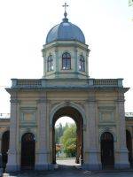 The Municipal Cemetery. Founded in 1891. The domed entrance gate contained a bell until 1950. The cemetery has a geometric network of tree-lined paths. On the main avenue can be found the Graves of the Worthy where distinguished citizens of Cieszyn lie, including; Paweł Stalmach, Fr. Józef Londzin, Gustaw Morcinek, Franciszek Popiołek and Ludwik Brożek. Of special interest are the numbered plates cast in the Třinec steelworks and the monument of the Mayor of Cieszyn J. Demel in the form of a coffin on a catafalque. The cemetery also contains the common grave of 81 victims shot by the Nazis.