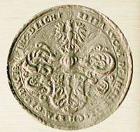 There is a contract in existence signed on 24th April 1643, i.e. on St. George's Day, between the Cieszyn Princess and Dietrich Rundt concerning his lease of the right to mint coin in Cieszyn. It was concluded for the period of one year conferring on the mint master the right to strike ducats, thalers, 3 and 2 kreutzer groschens, 3 kreutzer coin and hellers listed from the highest to the lowest denominations. He was instructed to mint them according to the regulations binding in the Bohemian and Austrian states and in Silesia, with the coin's design, coat of arms and inscriptions previously accepted by the Cieszyn Princess. In order to make the contract profitable for the mint master Elizabeth Lucretia committed herself to introducing a ban on the transportation of silver and bullion outside the Cieszyn Duchy, especially by the ”local Jew” i.e. Jacob Singer whereas everybody was permitted to supply them to the Cieszyn mint. She also guaranteed guardianship of the mint master, his assistants and die engravers. According to custom she exempted his house from the requirement of billeting troops. There are no references to separate premises which the mint master would have received along with the right to mint. Rundt had to pay 200 Silesian thalers quarterly to the princely treasury for the lease of the right to mint. Nevertheless Elizabeth Lucretia suffered from such a severe cash shortage that on the order of the Princess Rundt often made advance payments to the princely secretary, Georg Eckert.