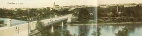 The second bridge across the Olza in Cieszyn, (nowadays Most Wolności) was opened during a ceremony in 1903 on the occasion of the 55th anniversary of the emperor's rule and called the Jubilee Bridge of the Emperor Francis Joseph I". In the background, a view of the town and the slope called ,,Matterówka" where the monument of emperor was unveiled in 1908.