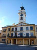 The Town Hall. Built after 1496, it was rebuilt and modified several times and finally given its present appearance in 1844 with the façade designed by A. Kment and the interior by J. Kornhäusel, retaining the tower built by I. Chambrez in 1800. The Council Chamber of the Town Council established in 1906 is decorated with the emblems of Cieszyn’s guilds and the coats of arms of Cieszyn noblemen. It houses the offices of the local authority.