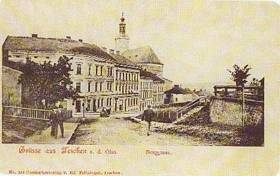 Upper street (Górna street). New streets were built in the south-east part of town late in the XlXth century, because of the barracks construction. One of the them Upper street, leading to the village Punców, was built behind the evangelical church.