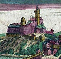 Zamek fragm. Panoramy miedzioryt Le Rouge'a wg Meriana XVIII w. ze zbiorów MSC