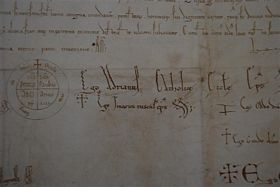 Najstarsza wzmianka o Cieszynie znajduje się w bulli papieża Hadriana IV dla biskupa wrocławskiego Waltera z 23 IV 1155 r. Cieszyn [Tescin] jest tu wymieniony wśród innych grodów kasztelańskich na Śląsku, ale nie ulega wątpliwości, że takie funkcje w ramach państwa pierwszych Piastów gród w Cieszynie pełnił juz w końcu X w.